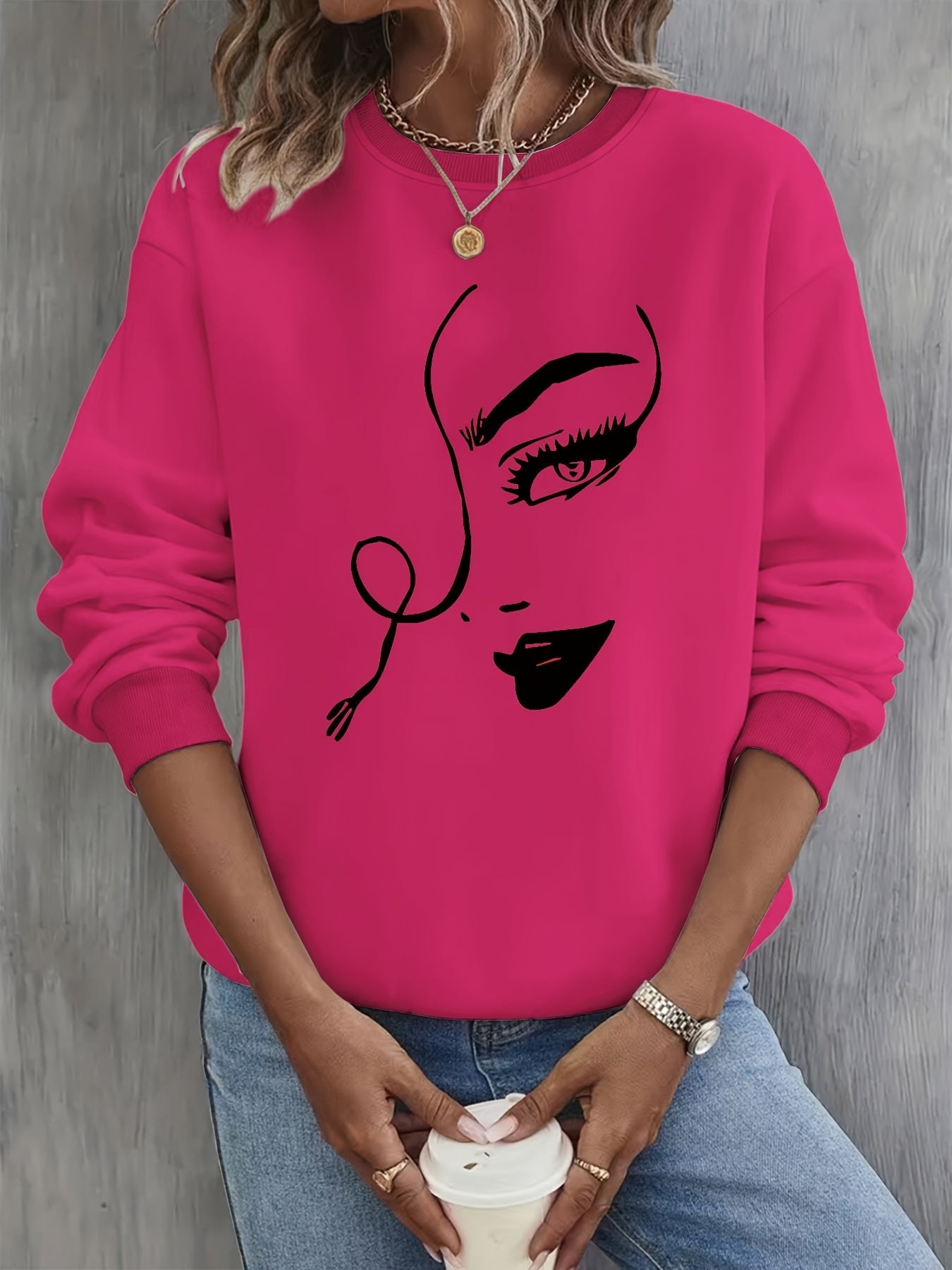 Denne sweatshirt kombinerer afslappet komfort med kreativt design i form af et minimalistisk ansigtstrykk, der fremhæver personlighed og stil. Den bløde overflade gør den ideel til både hjemlig hygge og hverdagsbrug. Med klassisk rund hals og ribkanter får du en flatterende pasform, som er nem at kombinere med alt fra jeans til leggings.