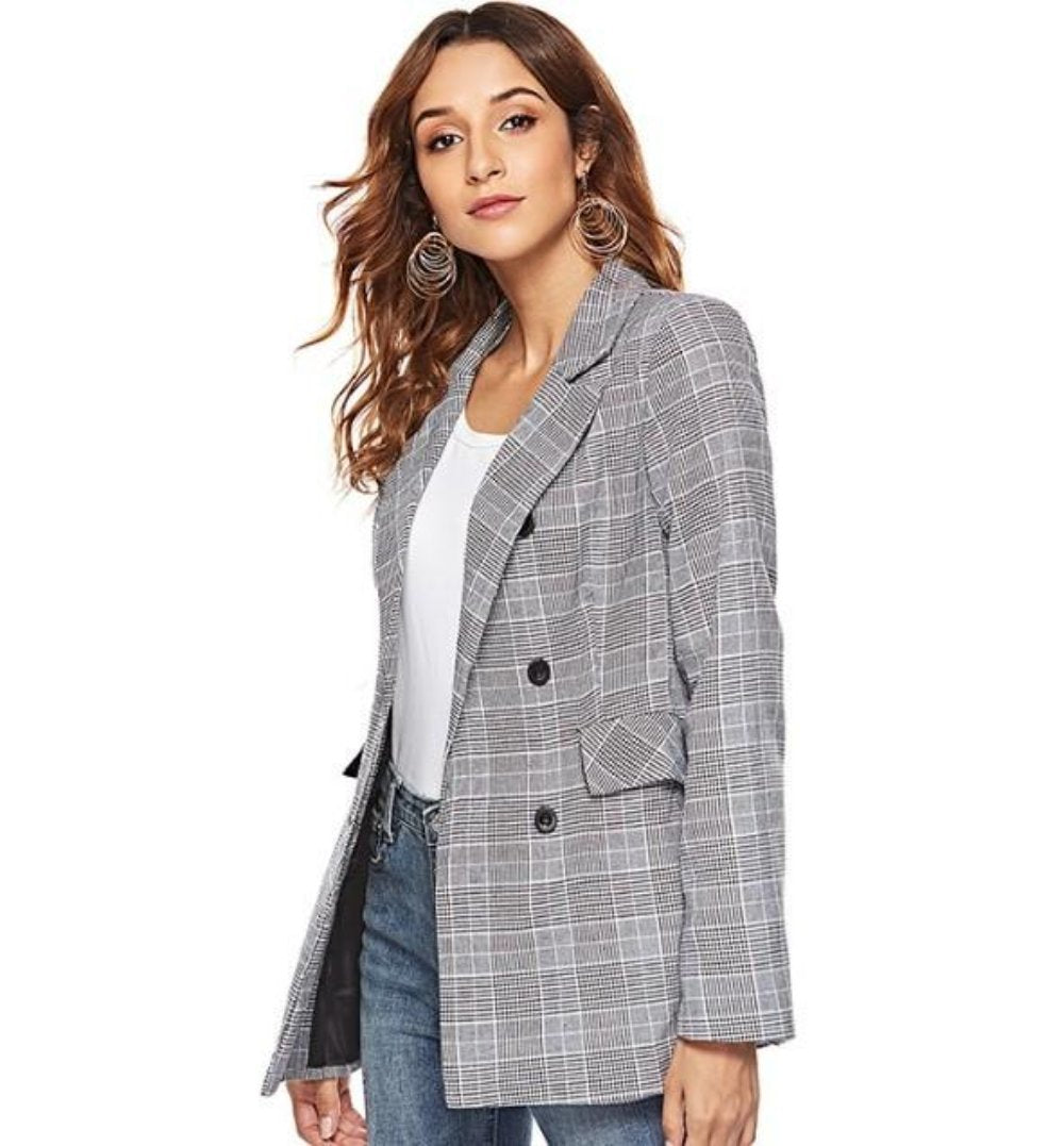 Denne blazer med ternet mønster og markante knapper kombinerer sofistikeret design med afslappet elegance. Den let oversize pasform giver komfort og stil, mens den skarpt definerede krave og strukturerede skuldre tilfører kant. Blazeren er perfekt til både jeans og elegante bukser, og giver ethvert outfit et løft.