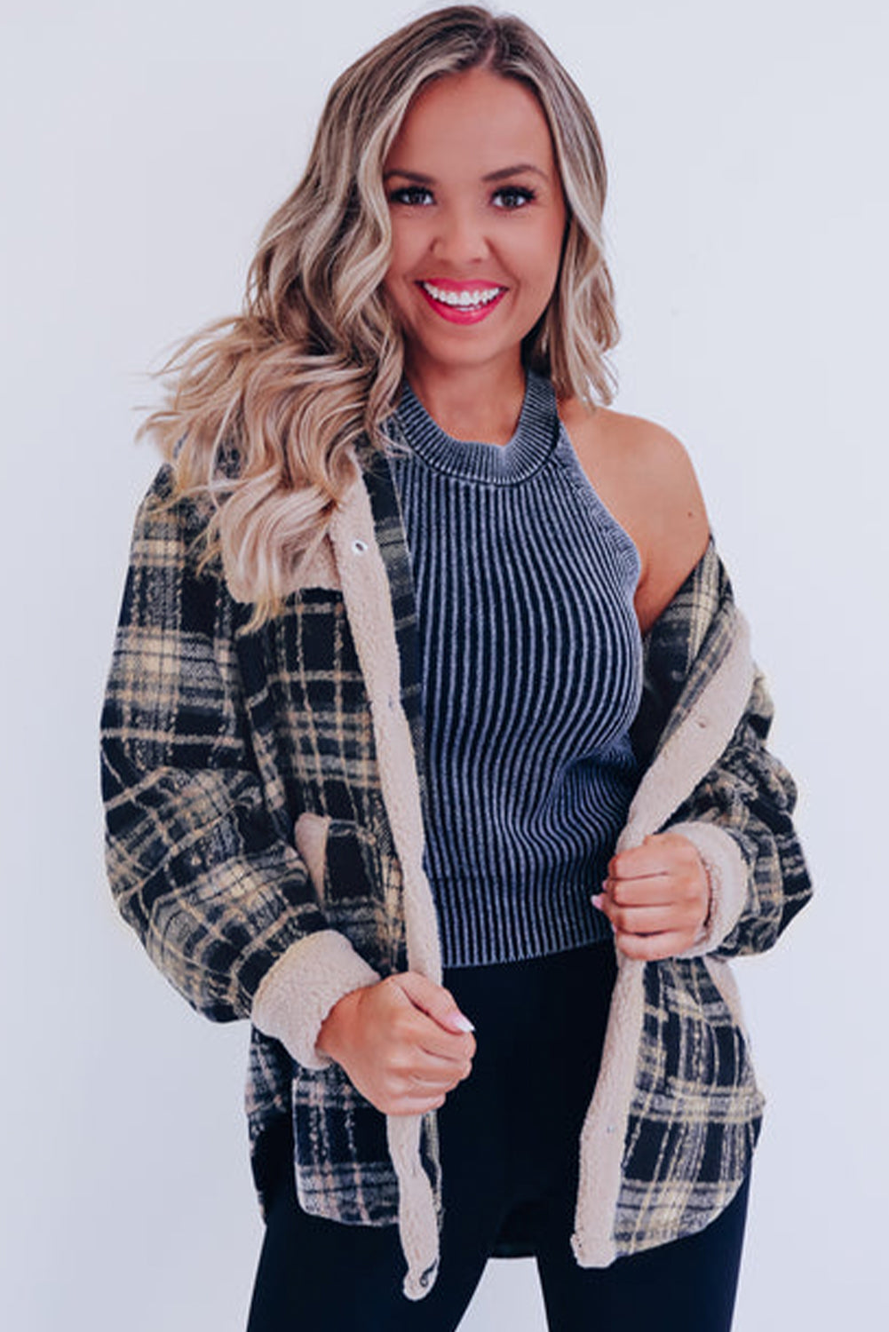 Denne ternede skjortejakke er foret med varmt teddy-materiale, der både sikrer komfort og giver et trendy, urbant look. De strukturelle detaljer som brystlommer og trykknapper gør den funktionel og alsidig, mens den afslappede pasform giver plads til lag-på-lag styling – ideel til kolde dage, hvor stil ikke må ofres.