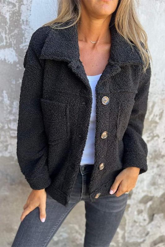 Trendy Teddyjakke med Knapper | Kunstpels | Varm & Stilfuld