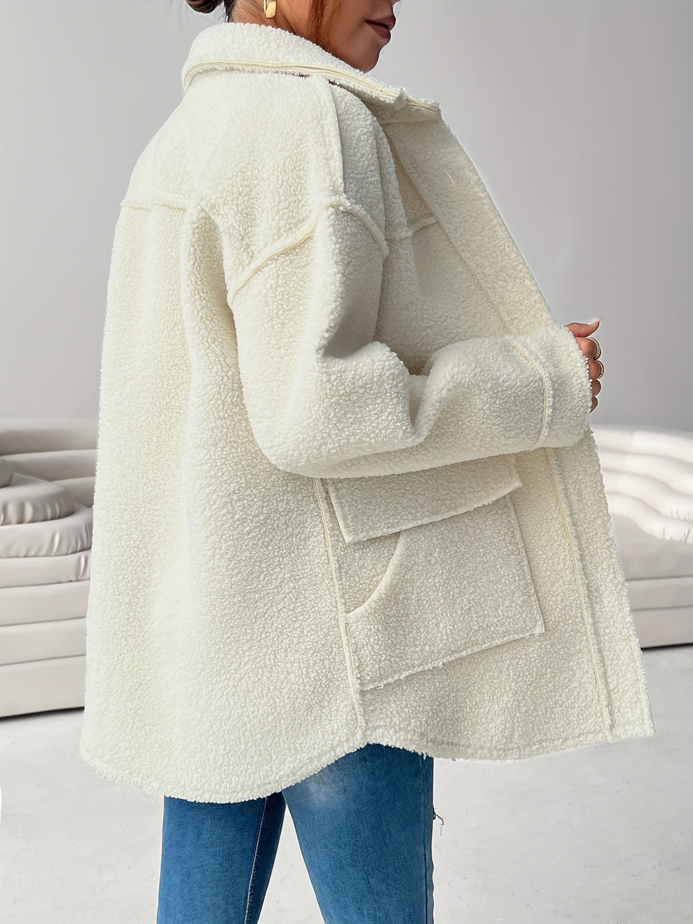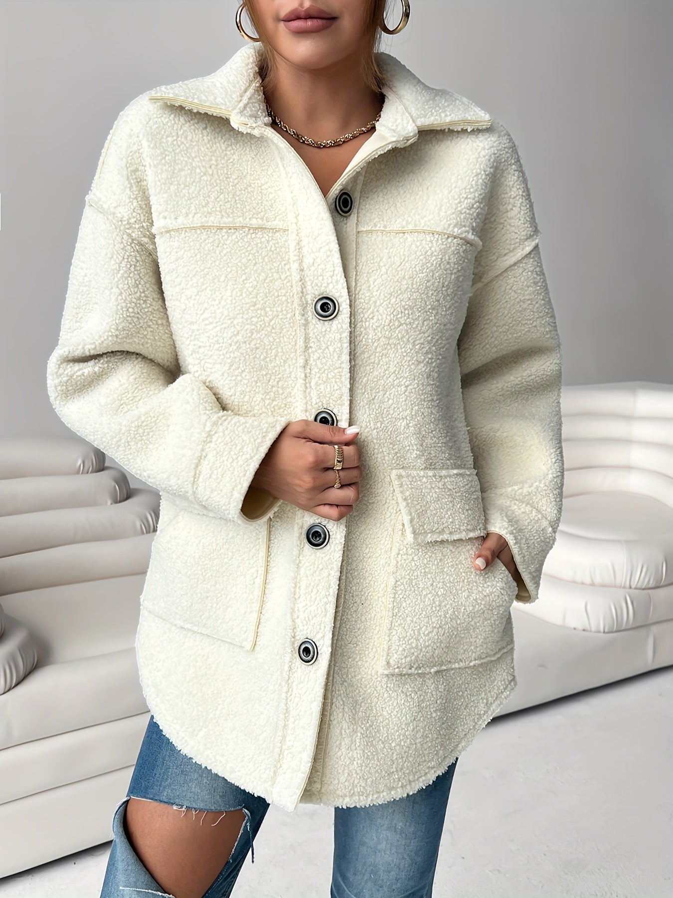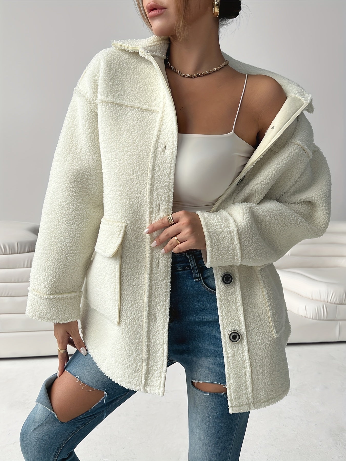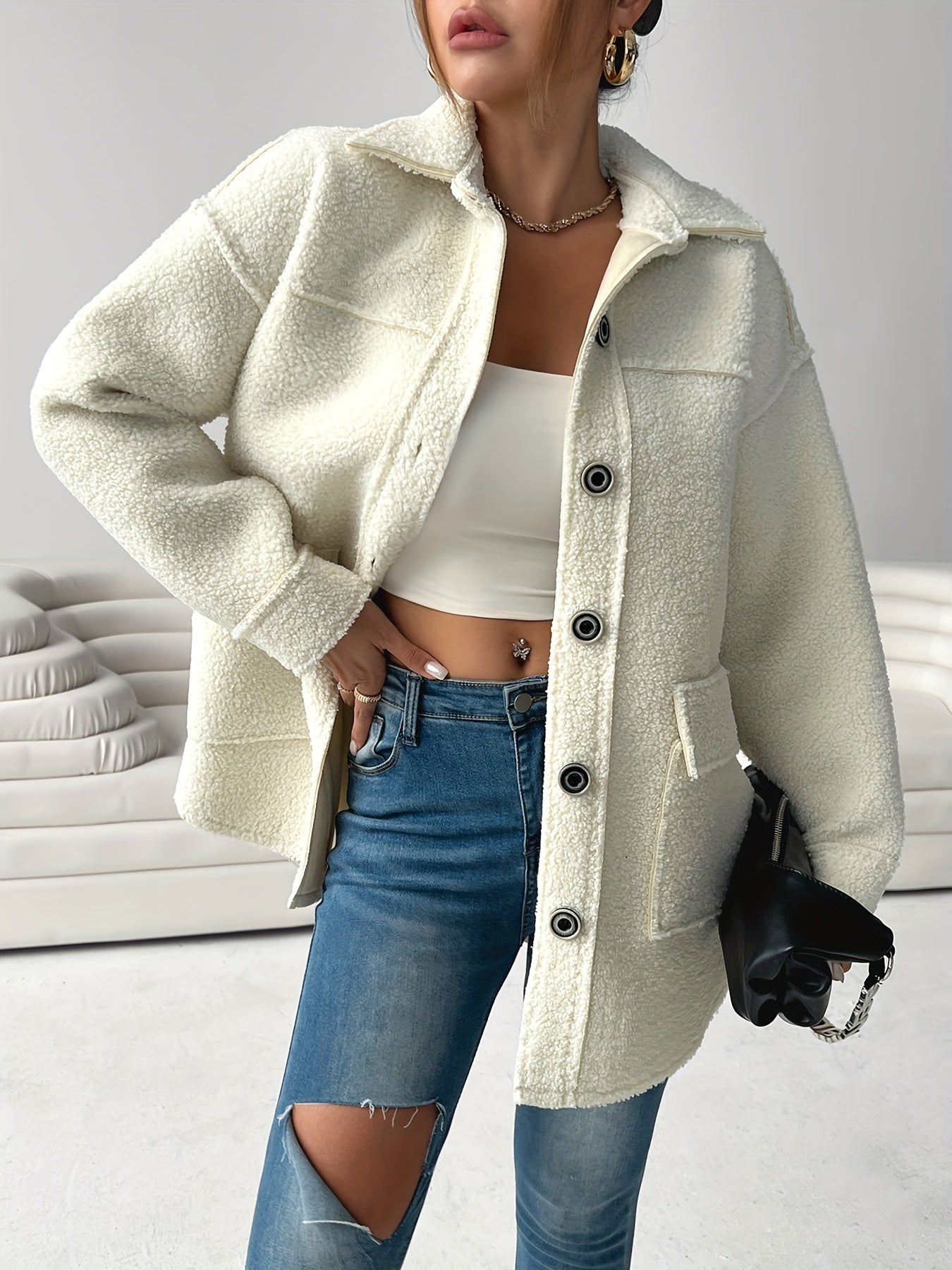 Hyggelig Plys Jakke med Knapper | Polyester | Komfortabel & Stilfuld