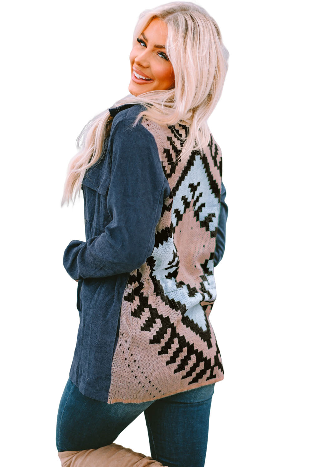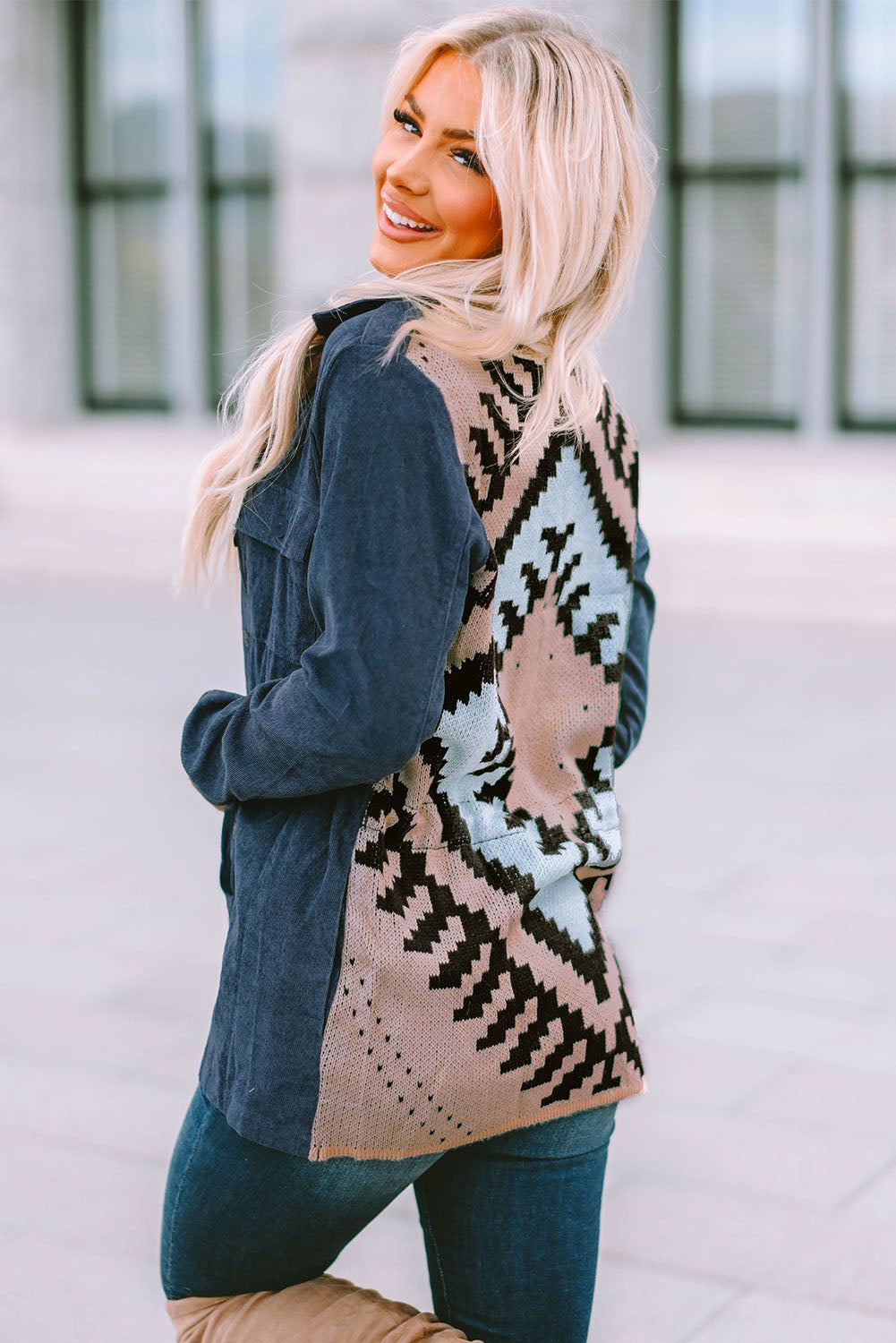 Denne jakkeskjorte skiller sig ud med sin strikkede ryg i grafisk mønster, der tilfører dybde og et karakteristisk udtryk. Fronten og ærmerne er holdt i et blødt, ensfarvet materiale med klassiske lommer og struktureret form. Kombinationen af materialer og det kunstneriske præg på ryggen gør den ideel til dig, der ønsker at udtrykke personlig stil uden at gå på kompromis med komfort.