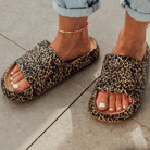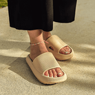 Denne moderne badesandal giver en luksuriøs fornemmelse med sit minimalistiske design og ekstra høje komfortniveau. Den brede rem sikrer et stabilt fit, mens den ergonomisk udformede sål aflaster dine fødder. Perfekt til afslapning derhjemme, en hurtig tur ud eller en afslappet feriedag.