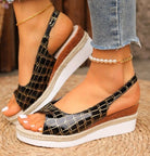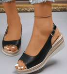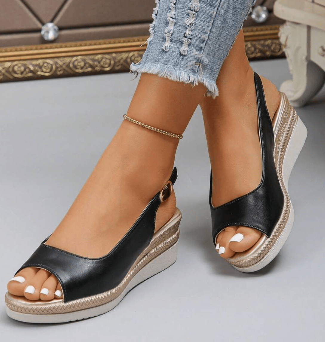 Disse elegante kilehælsandaler kombinerer stil med komfort. Den åbne tå og justerbare ankelrem sikrer en perfekt pasform, mens den polstrede sål giver maksimal støtte. Ideelle til både hverdagsbrug og sommerens udflugter.