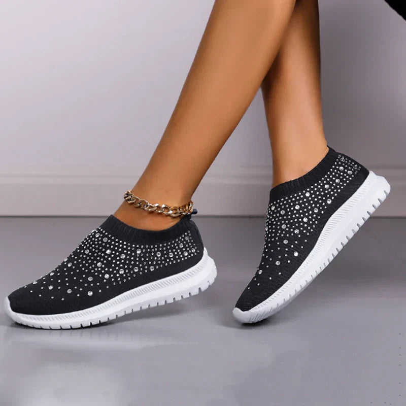 Strikkede Slip-On Sneakers med Rhinsten | Mesh & Gummi | Åndbare, Letvægt & Fleksible