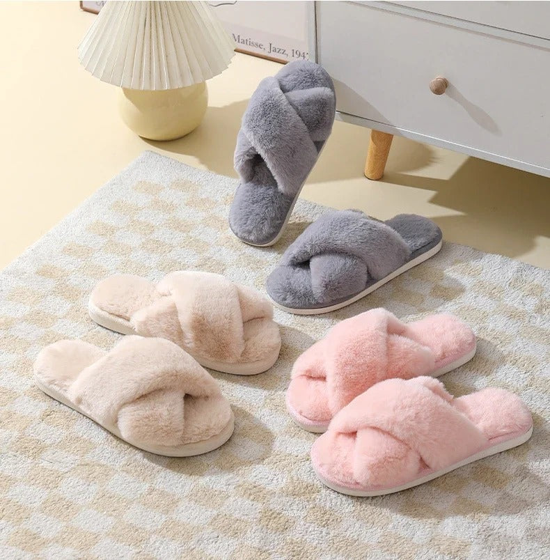 Krydsede Plys Hjemmesko | Plys & Skum | Bløde, Varme & Komfortable