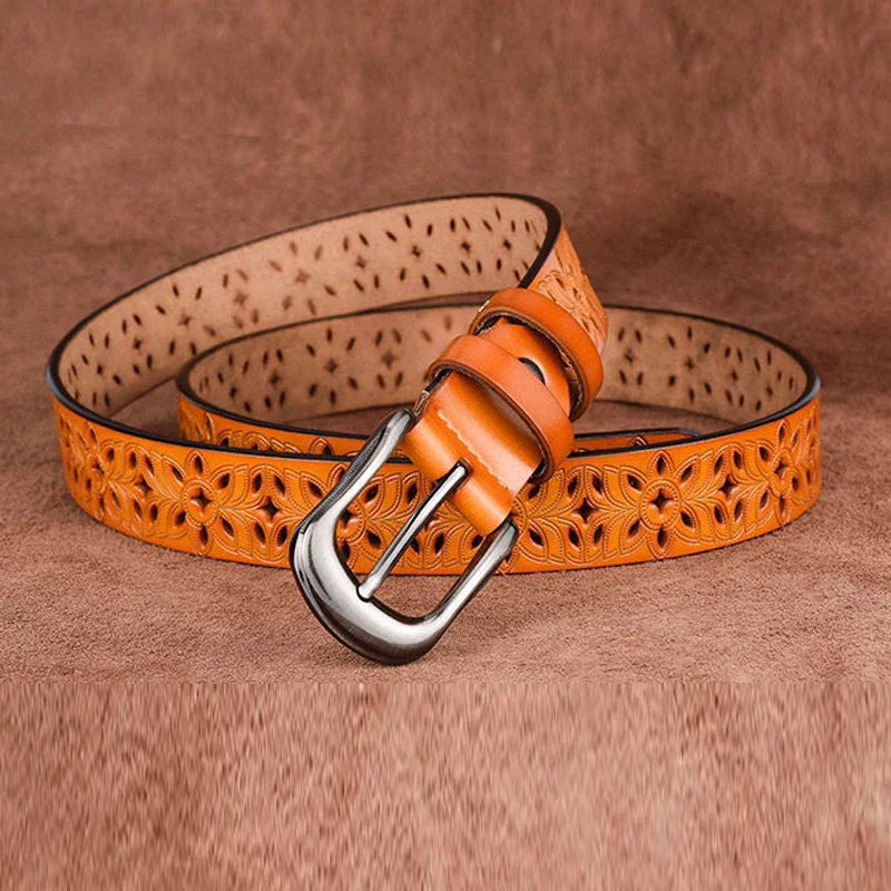 Elegant bælte til kvinder | Blomstret Udskæringsmønster | Klassisk & Kunstfærdigt