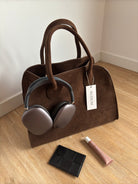Håndtaske i Ruskind | Buet Form | Klassisk & Elegant