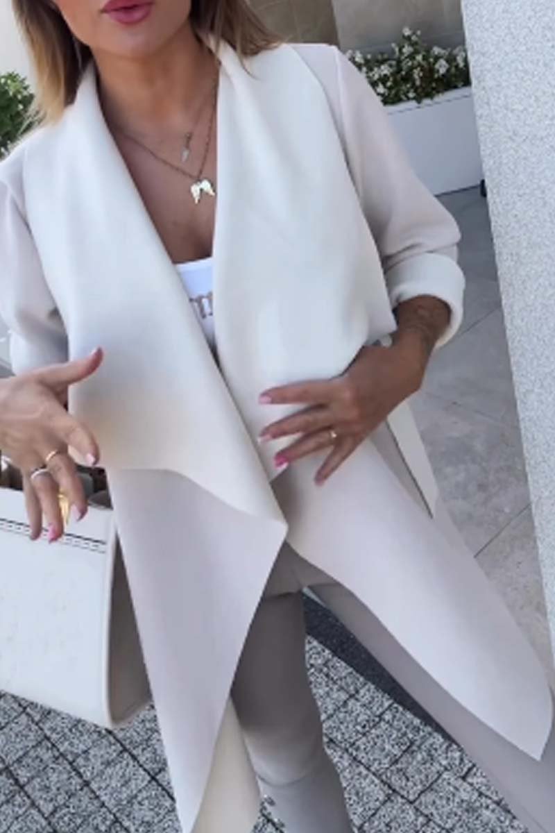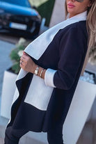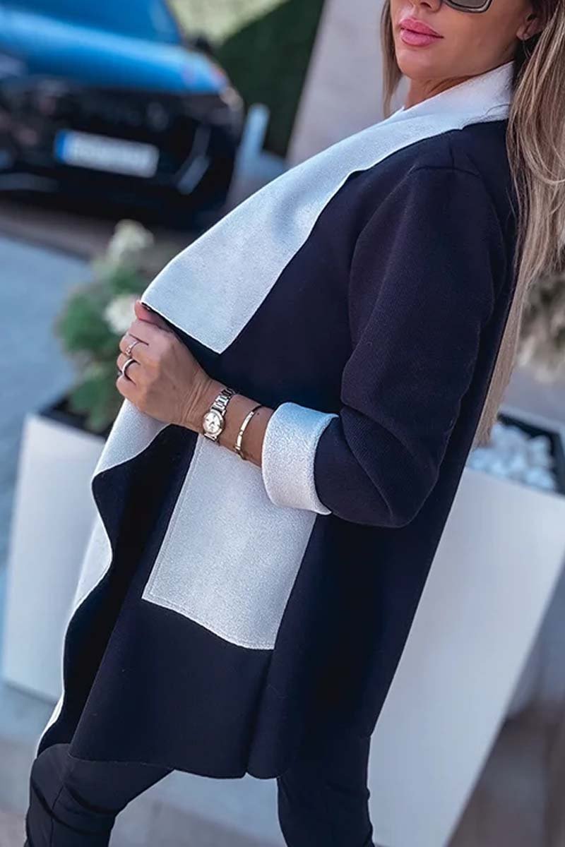 Denne åbne cardigan er designet med et sofistikeret kontrastlook, der giver et elegant og moderne touch. Det lette materiale sikrer en behagelig pasform, mens det flydende snit understreger en afslappet, men stilfuld silhuet. Perfekt til både hverdag og formelle lejligheder, hvor du ønsker at tilføje et eksklusivt lag til dit outfit.