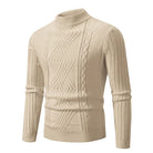 Denne kabelstrikkede herretrøje kombinerer et tidløst design med en moderne pasform. Den høje hals giver ekstra varme, mens det strukturerede strikmønster tilføjer en sofistikeret detalje. Perfekt til både afslappede og formelle anledninger.